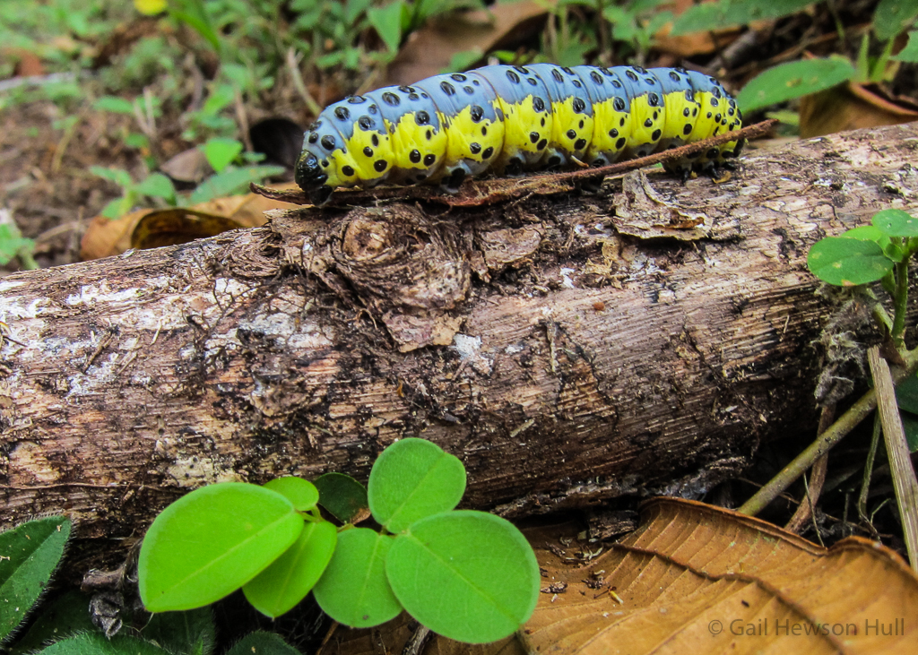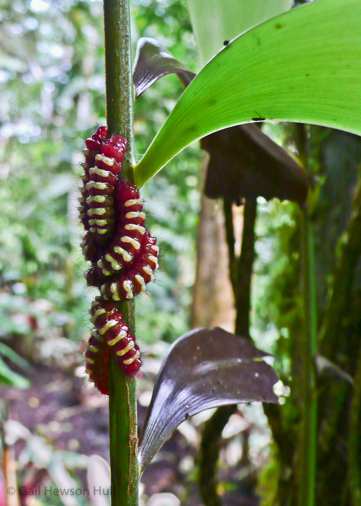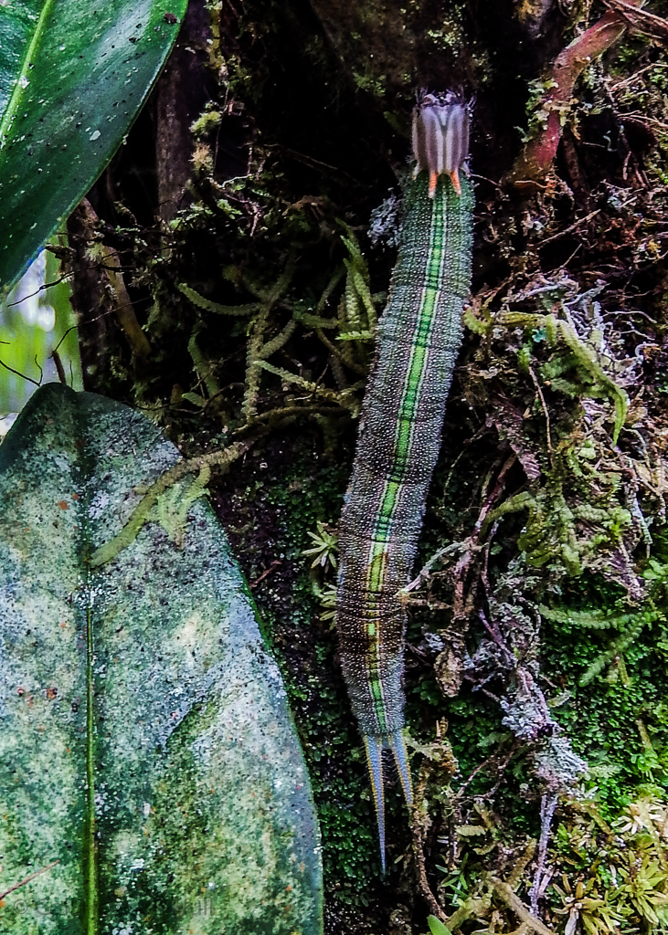 In the Northeastern United States, where I spent most of my childhood in country or exurban settings, caterpillars are not very charismatic—often dark, hairy and not eye-catching. Many moth and some butterfly larvae there are treated as pests, consuming leaves of garden plants or cherished native trees. However, at mid-life when I moved to Costa Rica, my attitude changed. The abundance of species of Lepidoptera meant many more opportunities to see not only the beautiful and diverse flying adults in gardens and forests (and under black lights in research settings), but also to see a stunning variety of strange and arresting caterpillars.