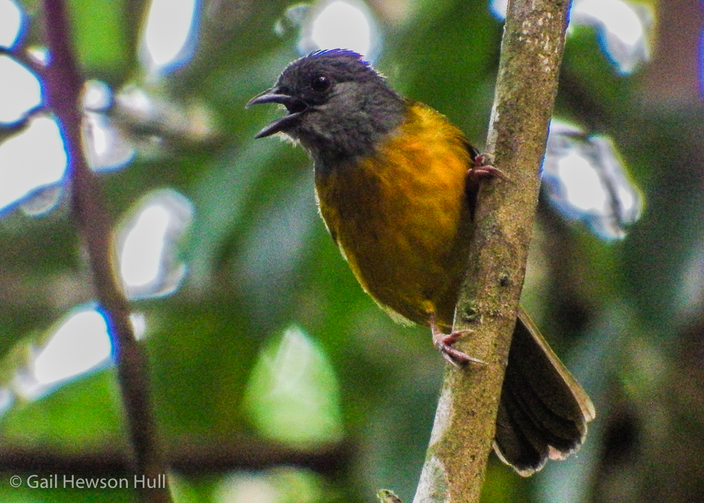 To hear a 12-second recording from Xeno-Canto of the high-pitched, squeaky song of the Gray-headed Tanager, click here and an audio player will open in a new tab/window. Then click the play ( ►) button. Close that tab/window to return to this post.