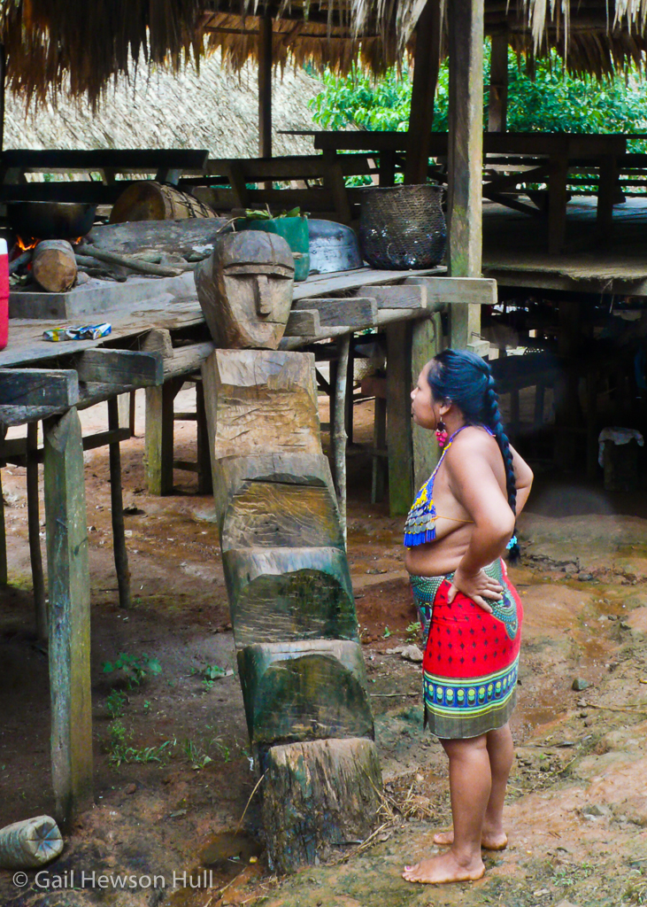 We purchased crafts, but declined body painting. We were too busy enjoying the experience of seeing how the Emberá lived: the designs of their homes, the materials with which they made their crafts, and how their children played joyfully in torrential downpours. As our boat motored away from the village shore, we envied the simplicity of their lives, imagining that all our common ancestors lived similarly, so many eons ago.