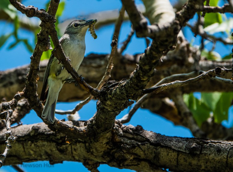 Cassin’s Vireo at Buckman Mesa area of Chile Line Trail, on the Rio Grande, about to feed nestlings.