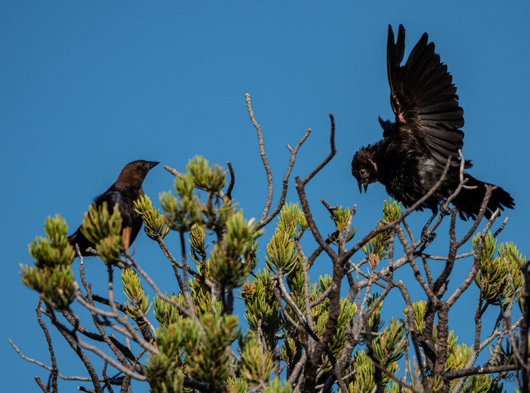 Brown-headed Cowbirds. Two males alternately practiced their courtship displays in the Zocalo community environs.