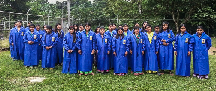 Pregnant Ngoble-Bugle adolescents who received a CAJA donation of raincoats. Photo: Dr. Carlos Faerron