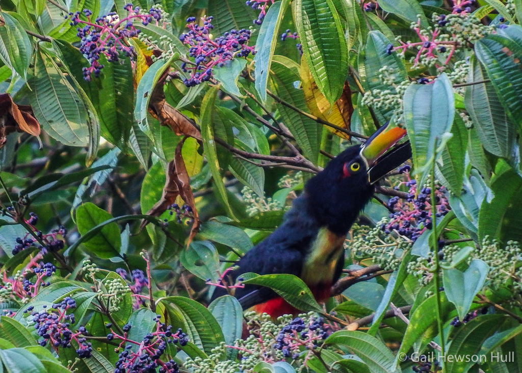 Some people think that anything a bird can eat, a human being can consume as well. Untrue! I have seen birds pecking on red hot chile peppers that most of us wouldn’t dare munch in their raw state. Toxic chemicals lurk in many fruits birds eat without harm, like red elderberry, deadly nightshade, and even white poison ivy fruits. In Costa Rica, red akee fruit (Blighia sapida in the Sapindacaeae family) are consumed by birds in the Caribbean lowlands and areas of Guanacaste Province, but its seeds with the poison hypoglycin A can kill a human being in a very unpleasant manner. (See Tropical Plants of Costa Rica by Willow Zuchowski). Fortunately, the largely tropical Melastomataceae fruits can be eaten with aplomb by birds AND people.
