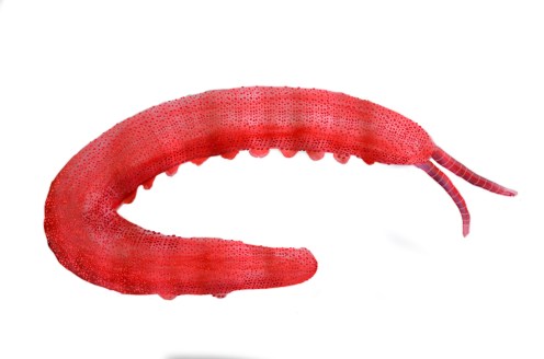 Peripatus ruber. Watercolor by J. Monge Nájera of a Costa Rican Onychophoran not seen for a century.